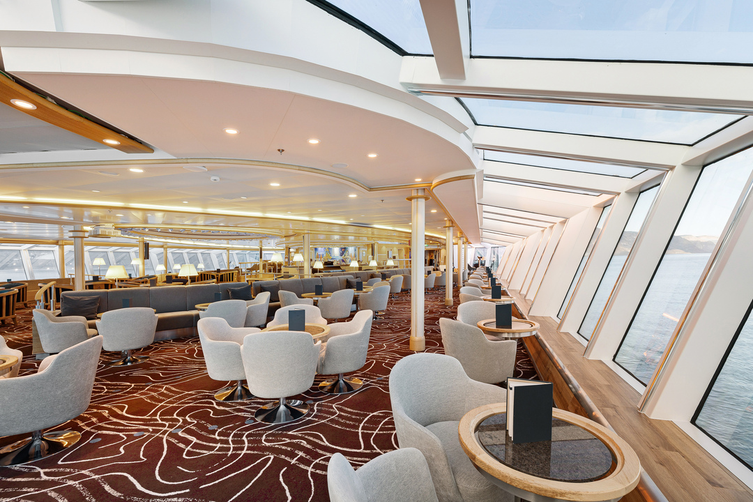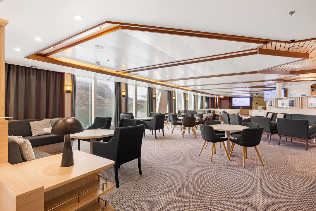 Ombord skapar HX duktiga kockar spännande menyer med hjälp av ingredienser från de platser ni färdas genom. Huvudrestaurangen Aune, har en naturlig prägel och bjuder på sociala och informella umgängesplatser. Här serveras frukost, lunch och middag som hämtar inspiration från de områden vi utforskar. Fine dining restaurangen Lindstrøm, uppkallad efter de norska polarhjältarnas favoritkock Adolf Lindstrøm, ingår för svitgäster. Gäster som inte bor i svit kan njuta av frukost, lunch och middag i Lindstrøm mot en extra kostnad. Den bästa platsen att avnjuta en perfekt cocktail är Explorer Lounge & Bar i fartygets för. Luta dig tillbaka, samtala med dina medresenärer och ta in de vackra vyerna utanför panoramafönstren.